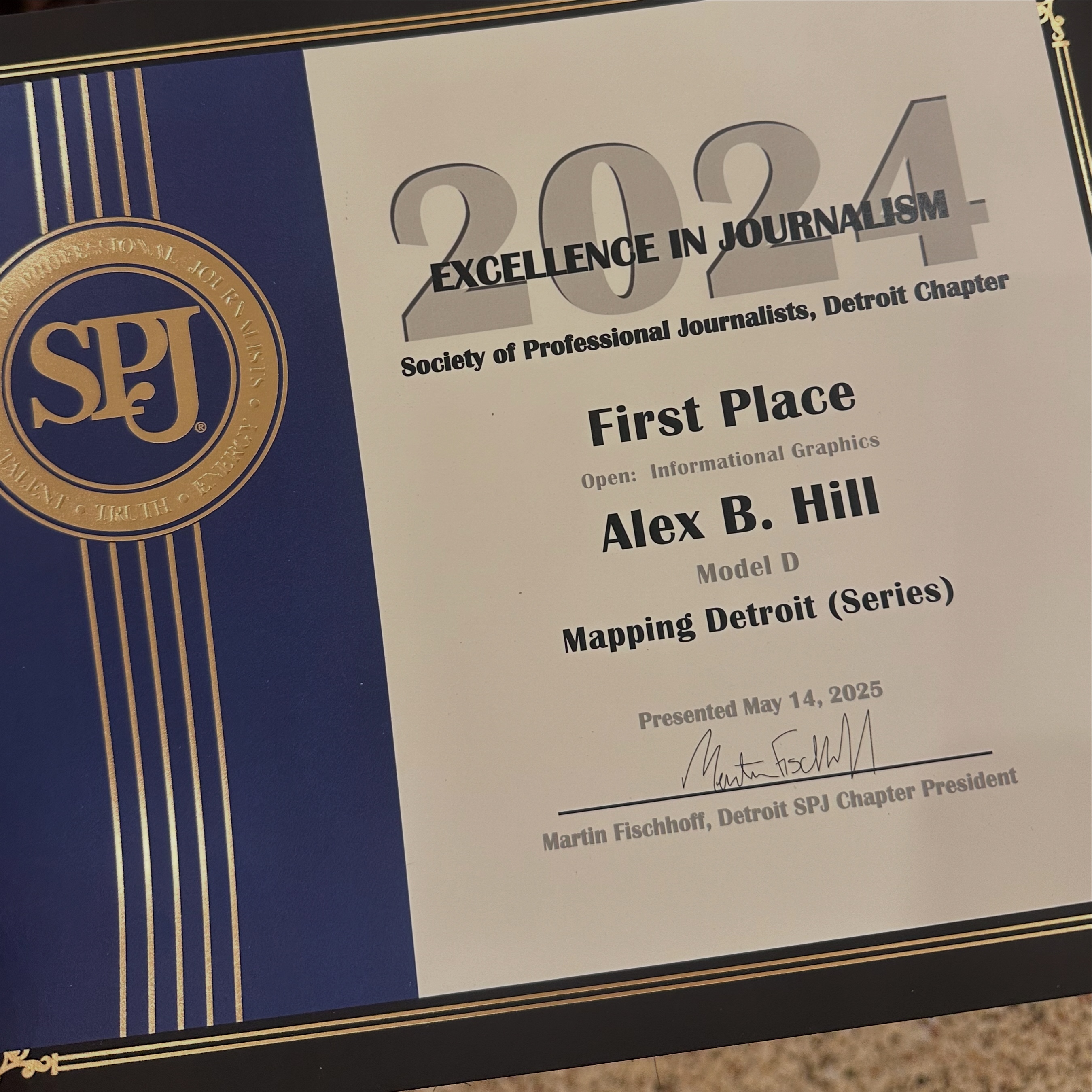 Since that time we’ve published a book of maps, produced award-winning map reporting with Model D Media, and have been recognized by the statewide geospatial organization for promoting “GIS for Everyone.”