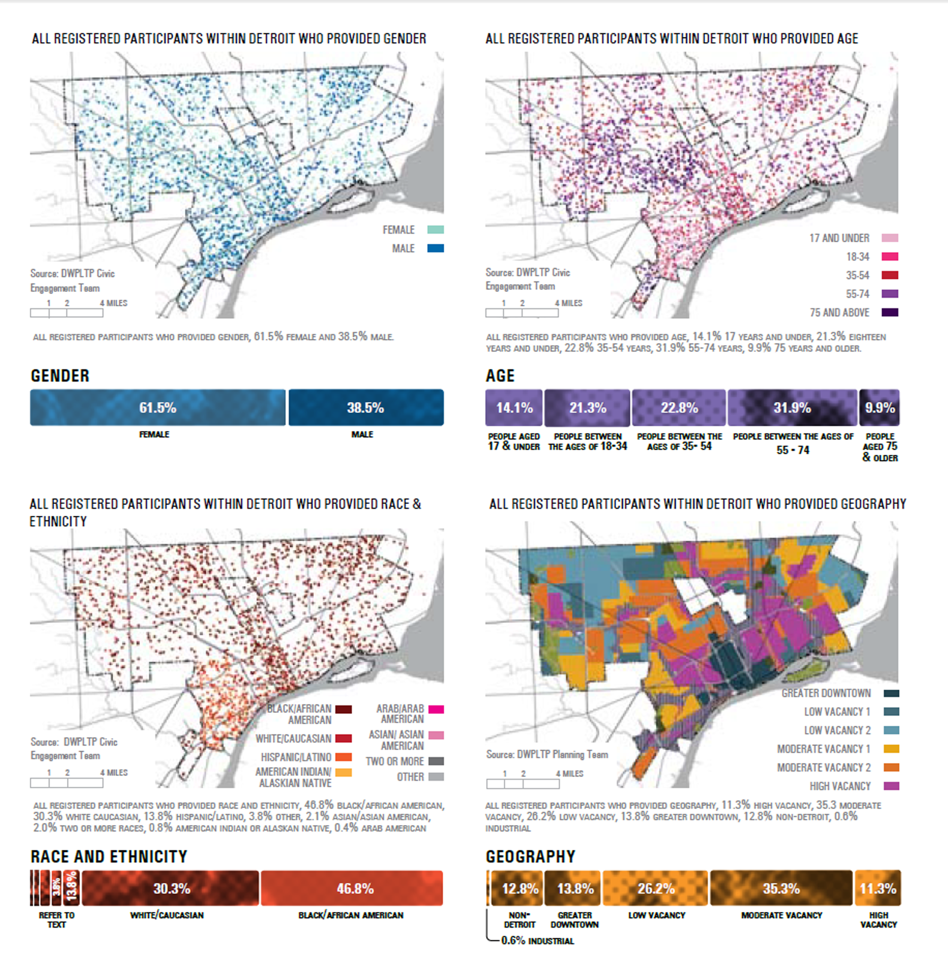 There have been discussions about how DFC hasn’t been as inclusive as it should have been or that it could have worked harder to solicit and include more residents feedback. Nevertheless, the DFC civic outreach represents a massive undertaking to try and engage as many residents as possible when it could easily be said that Detroit has no working infrastructure that connects all of its residents. There is a dense cluster in Downtown/ Midtown where working sessions, engagement sessions, and summits occurred unlike any other part of the city.