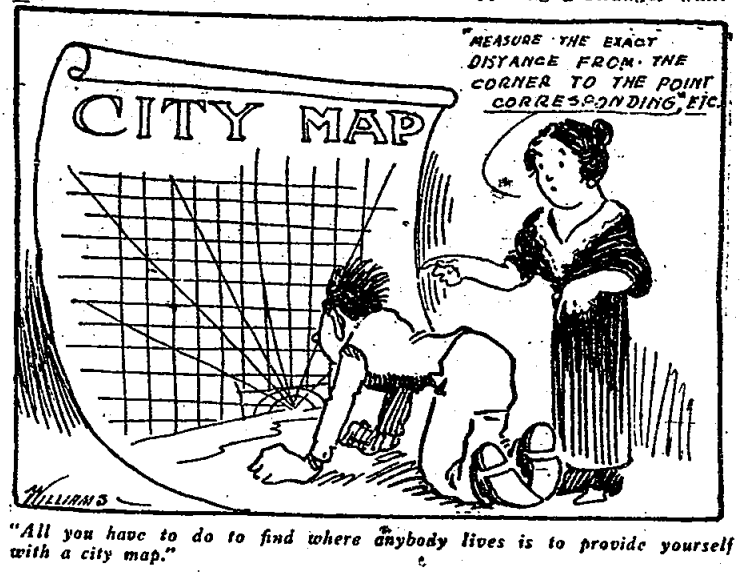 Instead of taking Jefferson avenue as the base line street, and numbering north and south from it, they took the river bank as a base line. New at the foot of Woodward avenue it is several blocks below Jefferson. When you get way out on the east side, where there are no streets south of Jefferson, you’ve got to number from the river just the same, with the result that Steve’s 342, although he’s just off Jefferson.