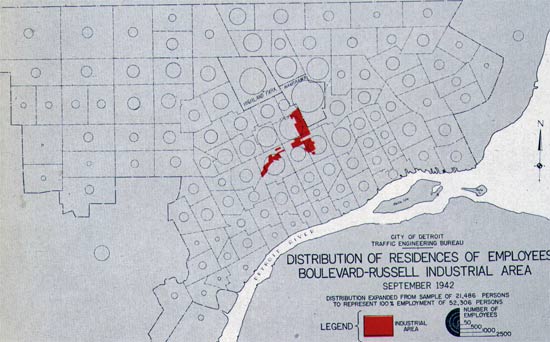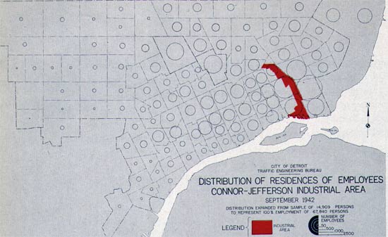 Map: Residences and Industrial Areas of Employees in Detroit 1942