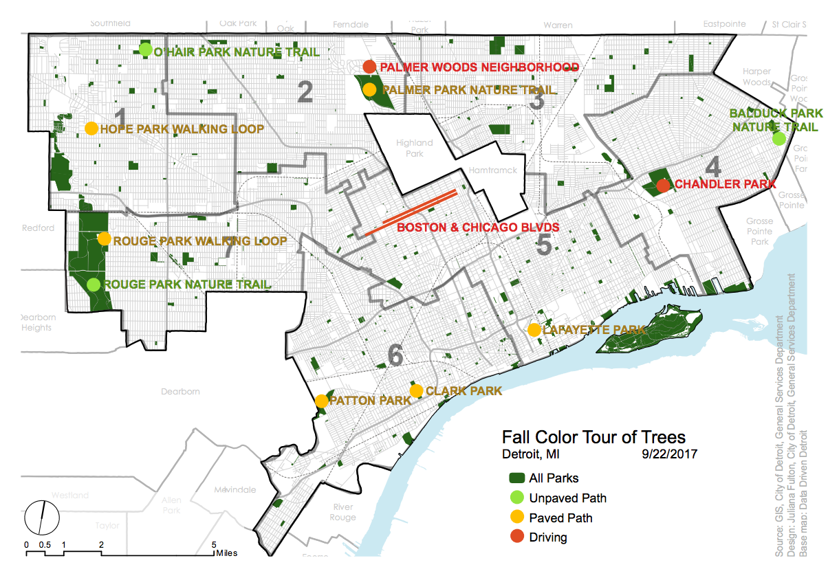 The City’s new “The Neighborhoods” site has asked the Parks and Recreation Department for their best places to see fall colors in Detroit.