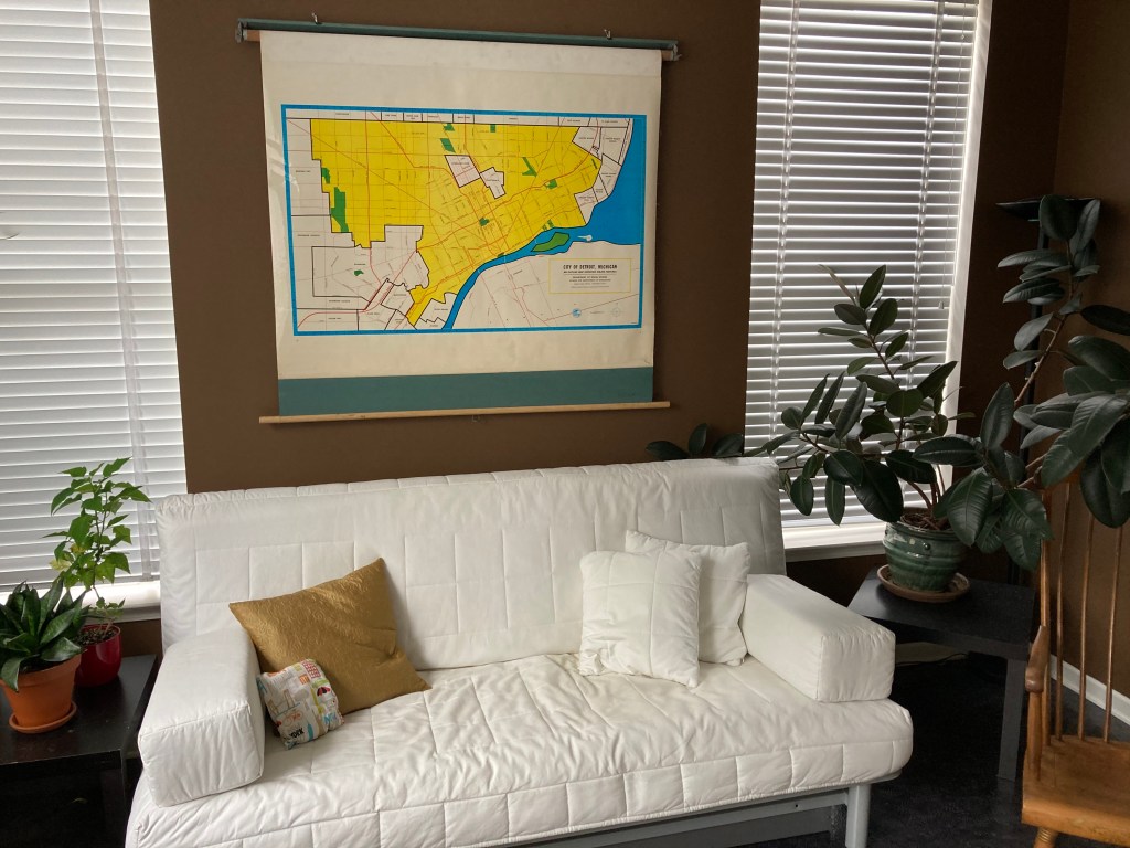 We’re starting a new series of posts that feature, YOU! and your “maps at home.” Let us know if you have a cool map of Detroit hanging up (or not hanging) that you’ve collected and really enjoy. Thanks to Francis for kicking us off!