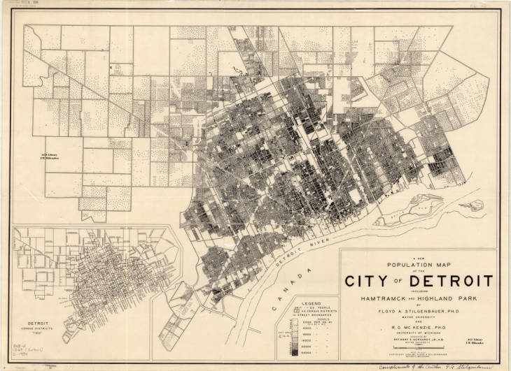 A New population map of the City of Detroit including Hamtramck and Highland Park / by Floyd A. Stilgenbauer ; R. D. McKenzie ; assisted by Anthony E. Gerhardt