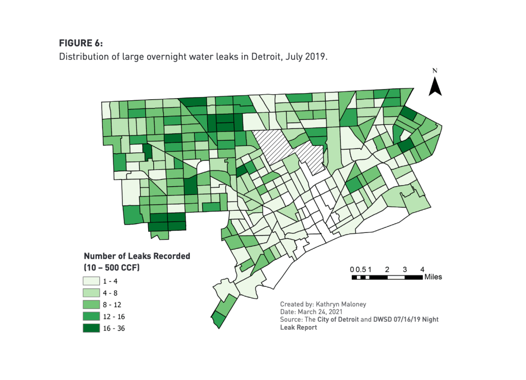 University of Michigan researchers used DWSD billing data from July 2019 to create a snapshot of what water leakage looks like across the city. Aging housing and deteriorating infrastructure contribute to potential leaks that can strain the water system and cause increased water bills for residents.