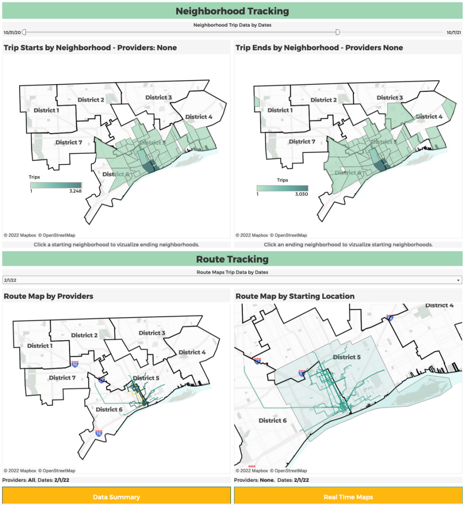Most people probably don’t know that there is a scooter deployment dashboard because the City of Detroit tried to enforce an equitable distribution of scooters beyond Downtown. Needless to say scooter activity is heavily focused in the Greater Greater Downtown area.