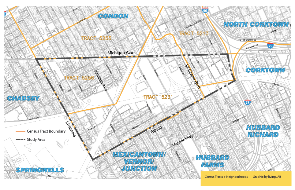 by Michigan Avenue, Livernois, Vernor Highway and I-96/I-75. The industrial