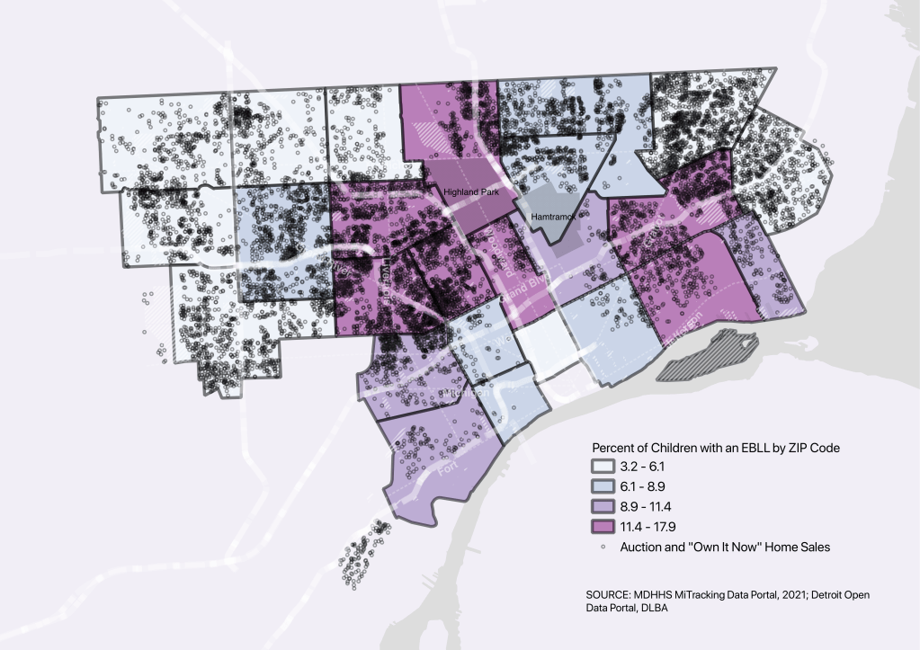 The recent reporting from Outlier Media on the 13,300 home sales from the Detroit Land Bank Authority (DLBA) auctions and “own it now” program are alarming. Most homes are sold as-is with no lead remediation whatsoever. Some of the largest clusters of these home sales are in the ZIP codes with the highest rates of children with lead poisoning. With such a well-known problem, Detroit simply puts its children at greater risk without addressing the need. There is no safe level of lead and these programs that ignore the problem amount to negligence.
