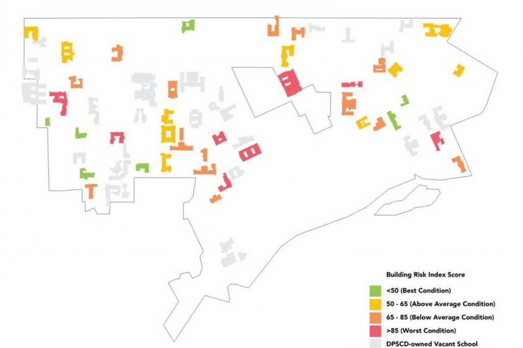 In 2020, the City of Detroit conducted a one-year study of vacant school buildings in collaboration with Interboro Partners, WJE, and BJH Advisors. In all 39 school buildings owned by the City were assessed along with 24 other buildings owned by DPSCD. The project was dubbed, “After School Detroit” not to be confused with actual after-school programming for children: