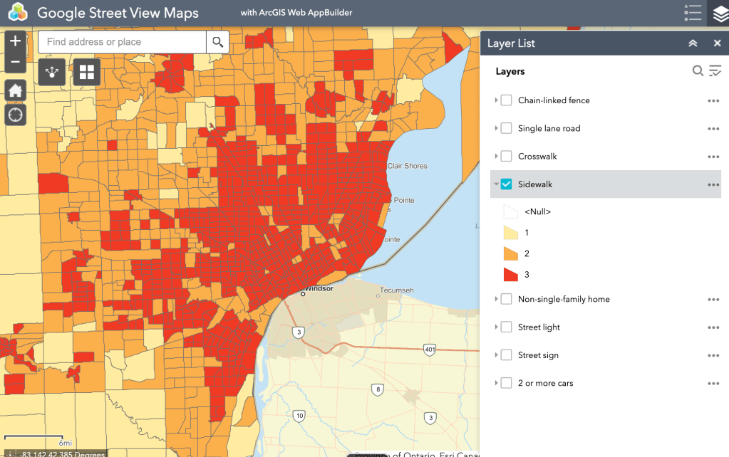 The project is exciting and novel with the potential to reduce time to assess built environment indicators, but a critical missing element that all too often haunts Detroit is the inability for databases and models to assess quality of assets in the built environment. A model may find sidewalks everywhere, but fails to categorize many Detroit sidewalks as impassable. Other computer models from MIT based on Google Street View (2014) oddly ranked streets full of cars as less safe than vacant lots with unsafe structures.
