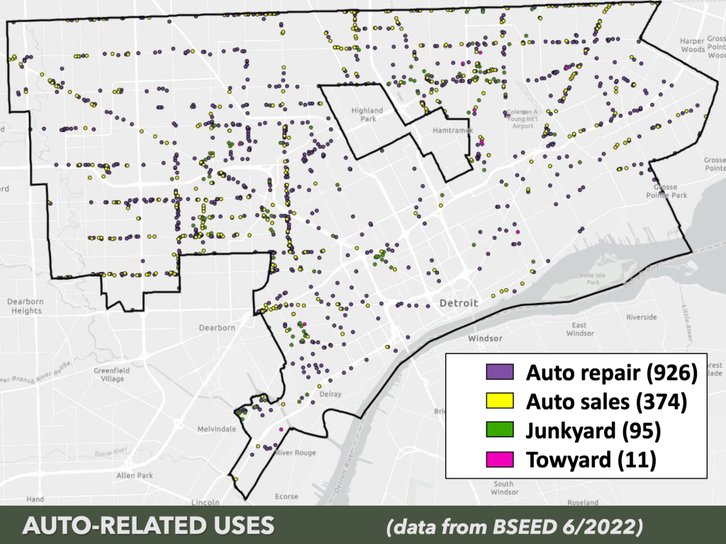If you’ve been following on Twitter, I’ve been attempting to interrogate the Mayor’s recent data points that he listed in his Mackinac Policy Conference (MPC) 2023 speech. Specifically, he noted 452 auto/scrap yards (original tweet used incorrect 454 number) with very limited information on what that category meant. The number seemed absurdly high to me as well as other city staff that regularly work with data.