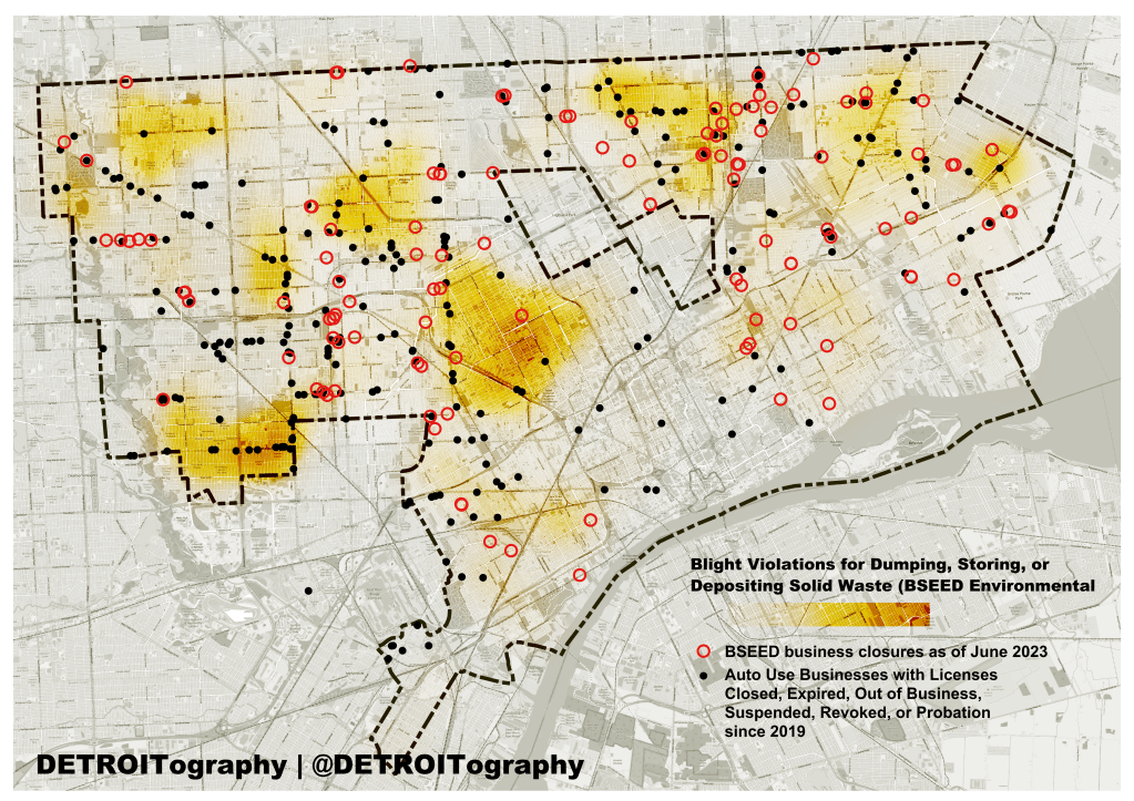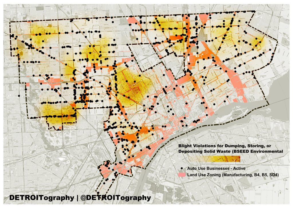 Maybe this numbers story isn’t done, but the conclusion is that what many observers assumed was widespread scrapping in the city. In reality there is a small subset of scrapping happening (likely larger than in other cities), but the majority of the concern is around piles of old cars and their parts that have been left to decay and create eyesores. I think those are two separate stories. Unfortunately, because of the way the data was presented, one mostly negative narrative has emerged about scrapyards in Detroit that includes small businesses operating as car mechanics or used car sales.