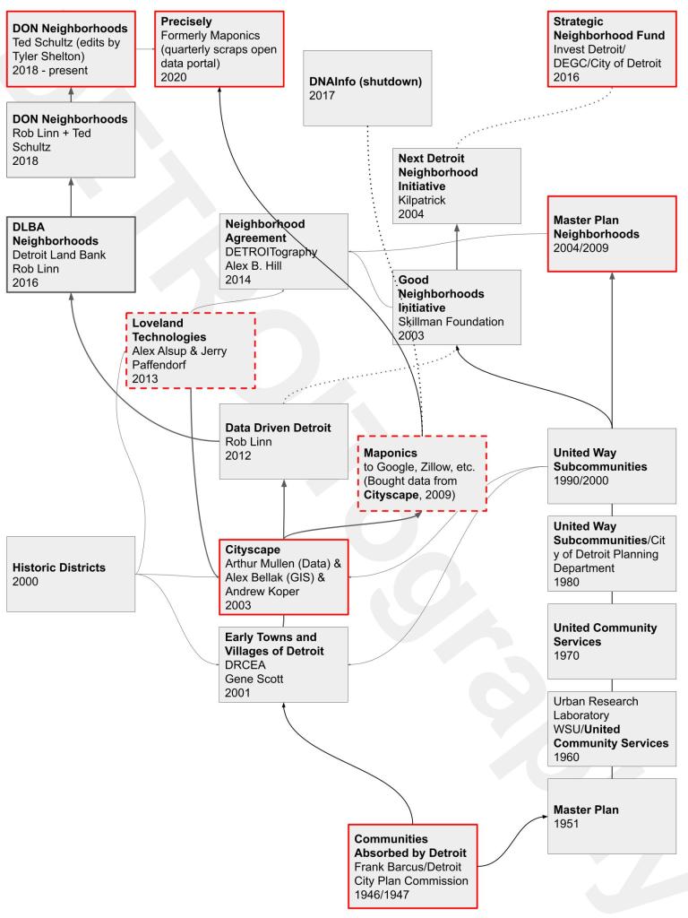 The obvious answer is yes, Detroit neighborhoods have been mapped many, many times by many different people, groups, and entities. Some Detroit neighborhoods are best understood as historic districts, others are born of strong neighborhood associations (for better, for worse), some are simply terms given to a geographic area, and others are strictly defined by non-profits and investing organizations.