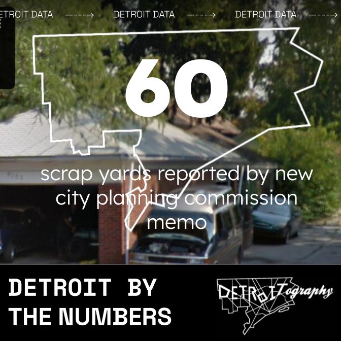 recent Legislative Policy Division of the City Planning Commission (CPC), serving City Council, reports there are 60 scrap yards in the city – a significant difference from the 95 reported by BSEED in June 2023 or the 110 number listed by EGLE in August 2023