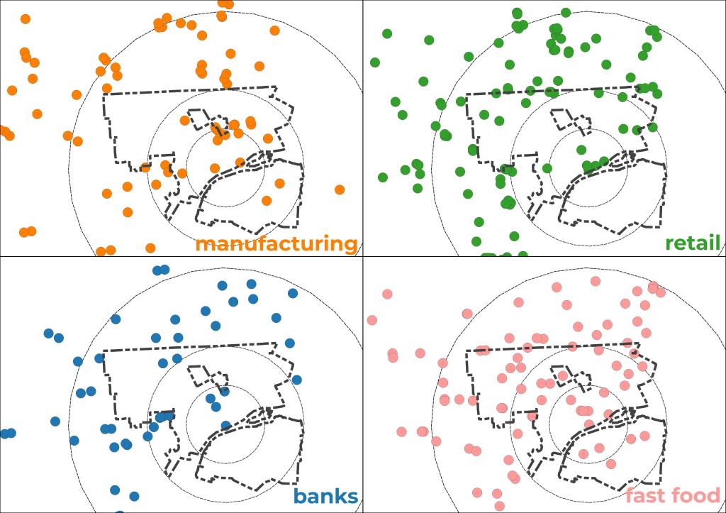 Detroit is a city of change even though we often seem relatively steadfast or even stagnant. I first mapped “business rings” of Detroit in 2014 and largely concluded they were empty except for national fast food chains. Now, 10 years later, I wanted to explore what has changed and what has remained the same related to the presence of national brands’ footprints in Detroit.