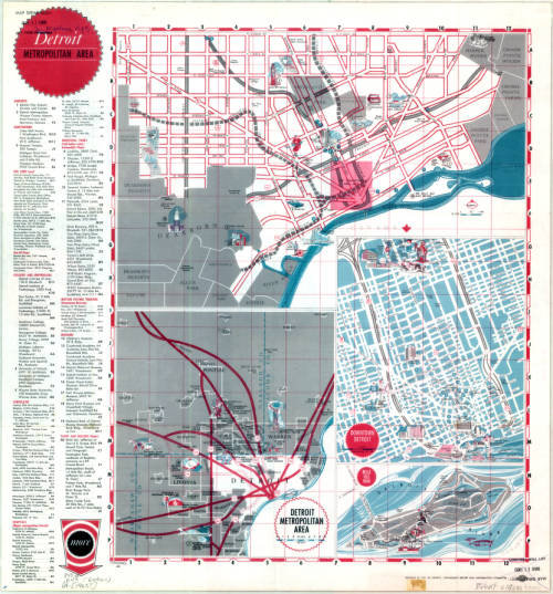 This map in the American Geographical Society Library Digital Map Collection at University of Wisconsin Milwaukee was created by the City of Detroit Department of Report and Information Committee. It’s always interesting to see maps that note the planned expressways. Beyond the city limits the expressways get very curvy and ephemeral.