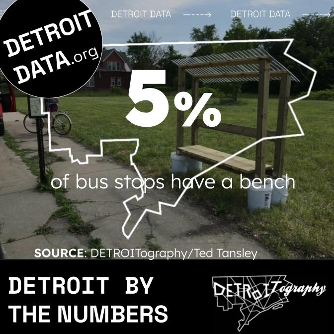 of Detroit bus stops have a bench (DETROITography/Ted Tansley) Check out the data on DetroitData.org