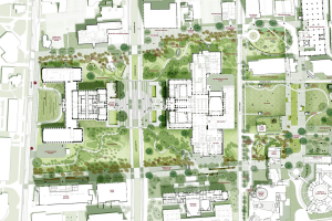 Map: Proposed Cultural Center Plan in Detroit 1948