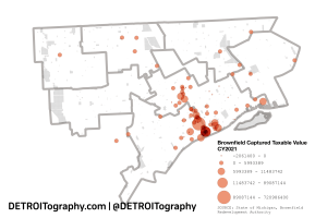 Map: Brownfield Captured Taxable Value in Detroit 2021
