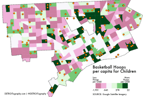 Map: Basketball Hoops per capita for Children in Detroit 2017