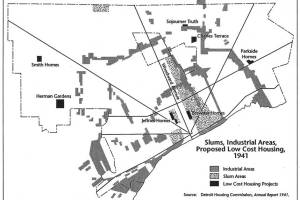 Map: Slums, Industrial, and Low Cost Housing in Detroit 1941