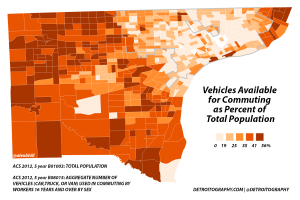 Map: Vehicles in Detroit as Percent of Total Population 2012