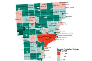 Map: Detroit Regional Population Change 2010 to 2020
