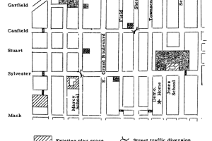 Map: Proposed Play Space in Gratiot-Mack Neighborhood Improvement Plan 1955