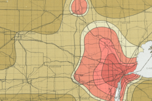 Map: Detroit Percent of Land in Farms 1900 – 1959
