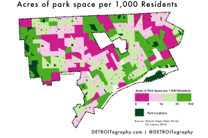 Map: Park Acres Per Resident in Detroit