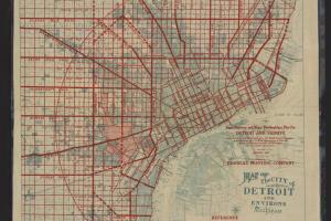 Map: Super Highway and Major Thoroughfare Plan for Detroit 1925